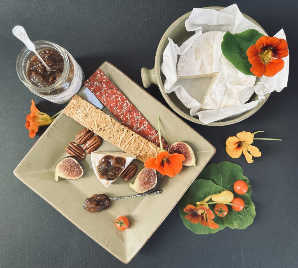 4) Érlelt fehérpenészes sajt (brie), füge chutney, dió.